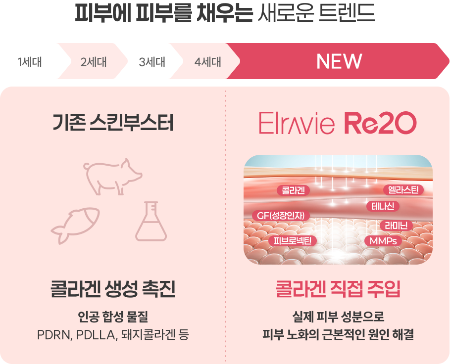 엘라비에 리투오(Re2O)는 무세포동종진피(hADM)를 활용한 피부 재생 스킨부스터로, 피부 속 ECM(세포외기질)을 보충하여 탄력과 밀도를 개선하는 시술입니다. ECM은 피부 조직을 구성하는 중요한 성분으로, 나이가 들면서 감소하게 되는데, 엘라비에 리투오는 이를 보완하여 피부 탄력을 높이고 전반적인 피부 상태를 개선하는 효과를 제공합니다.